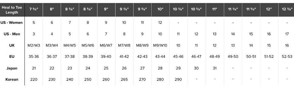 SIZE CHART