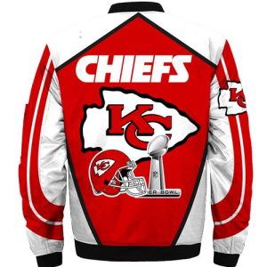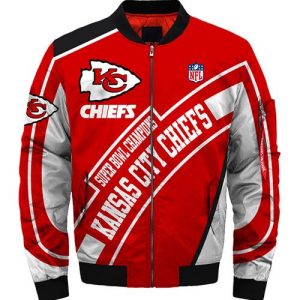 Hi there! You are looking at our Kansas City Chiefs bomber jackets. These styles are unique, made with love, and they are perfect accessories for your outfit. The Kansas City Chiefs logo on the jackets makes them perfect items for any Chiefs lover.