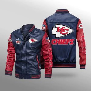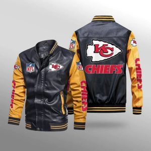 - This llight-weight Chiefs leather jacket with a high collar, full-zip front, and side seam pockets completes a stylish look for cool weather.