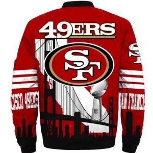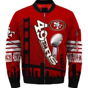 Hi there! You are looking at our 49ers bomber jackets. These styles are unique, made with love, and they are perfect accessories for your outfit. The San Francisco 49ers logo on the jackets makes them perfect items for any San Francisco 49ers fan.